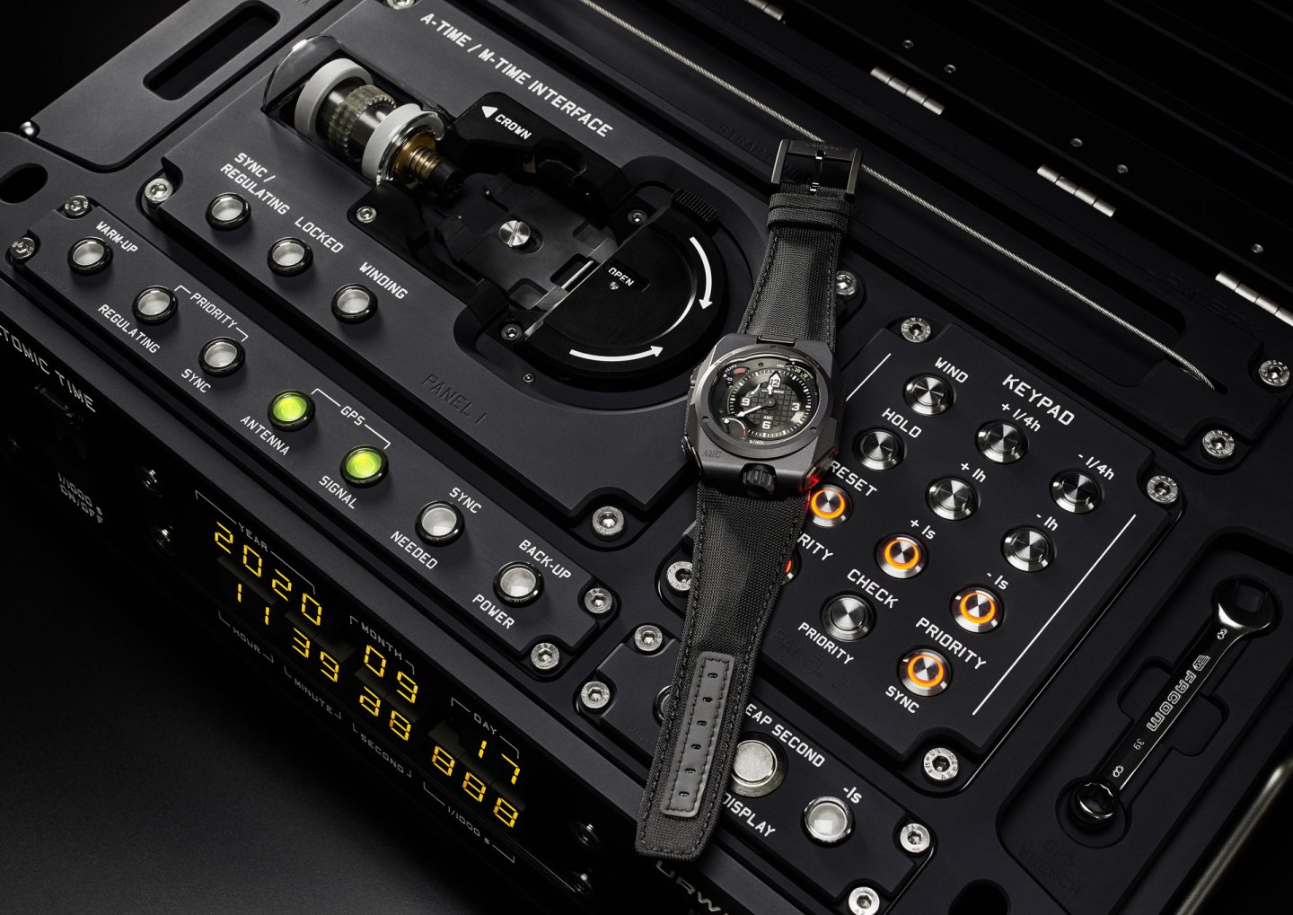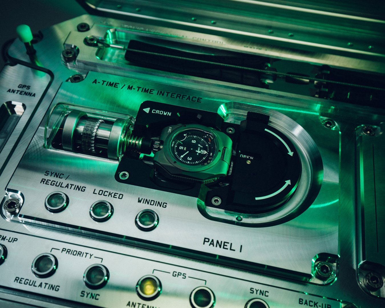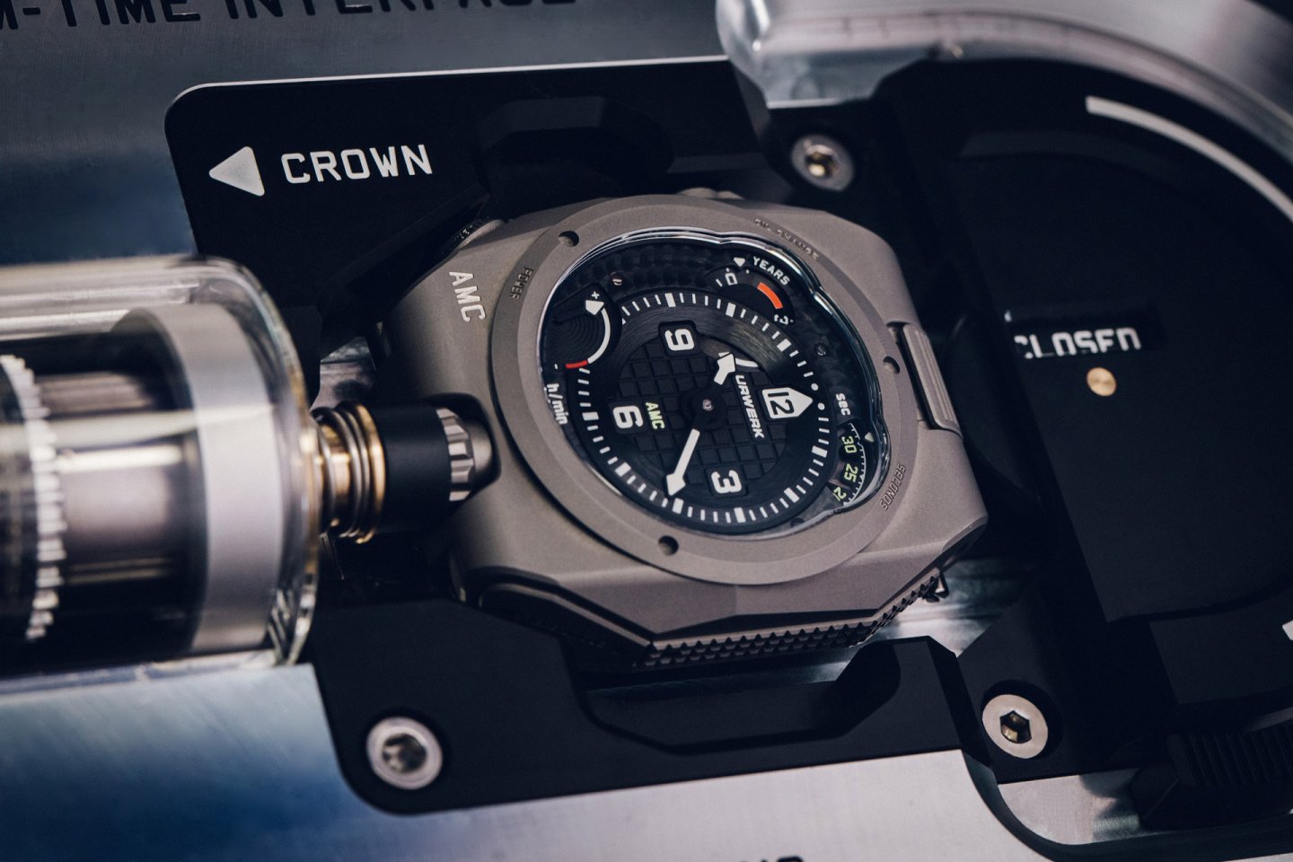 The atomic master clock component of the URWERK AMC weights approximately 35 kilos and the case is in solid aluminum.
