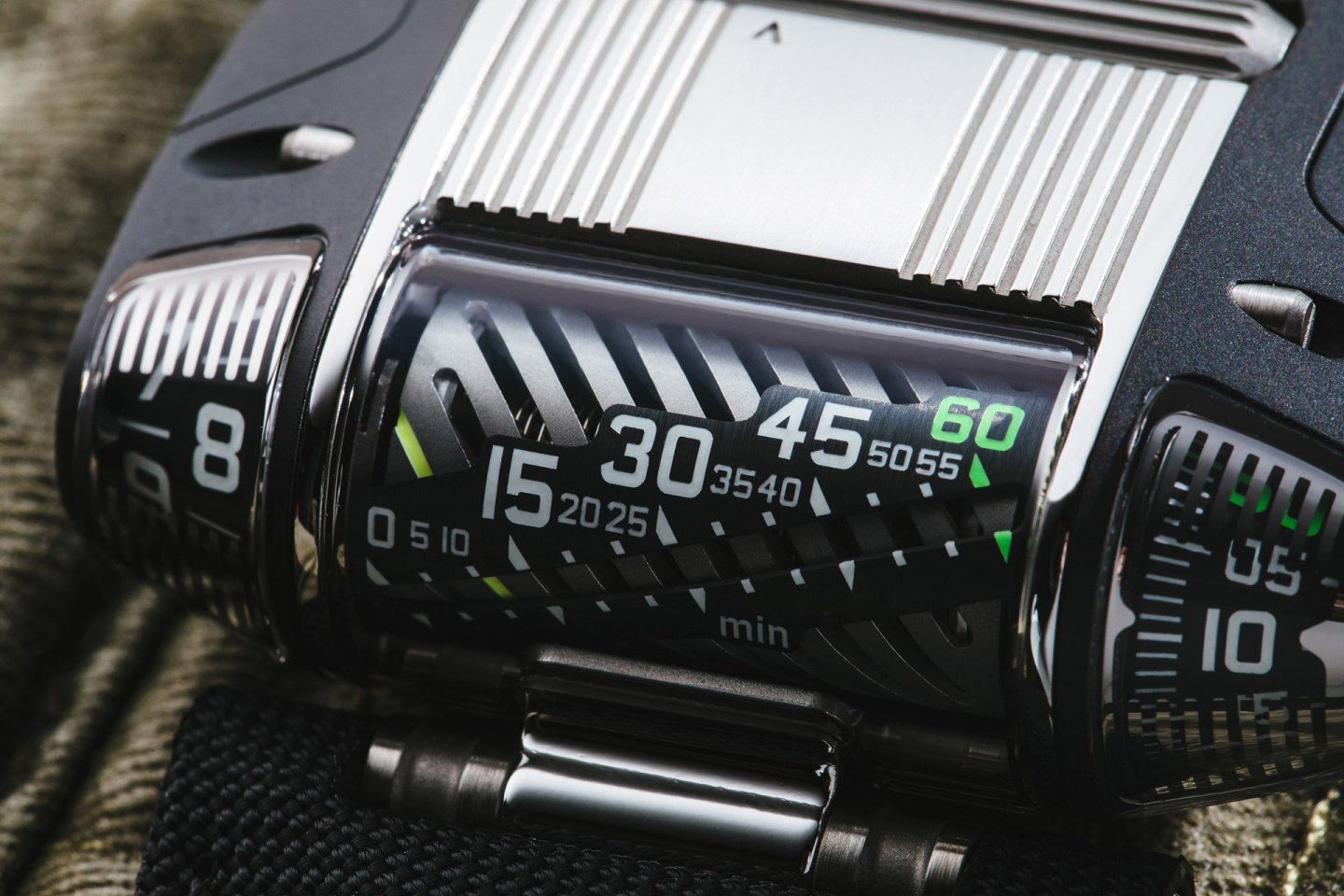 In the URWERK tradition, none of the indications of the UR-111C watch are conventional. Never has a roller on the case performed the functions of the crown, nor have the running seconds meandered across a cluster of optical fibers. Nor would it be an authentic URWERK watch if its case didn’t look as if it had been designed by a Sci-fi passionate.