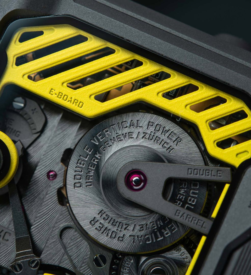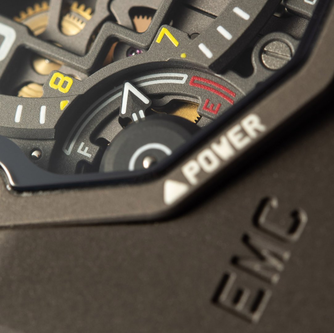 EMC is a fully 100% mechanical watch. The calibre was conceived, developed, crafted and calibrated in the URWERK ateliers.